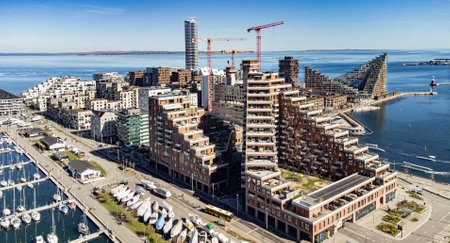 Copenhagen. Denmark. 15. September. 2021. Beautiful modern buildings on the bay in Copenhagen, Denmark. European architecture Architecture Europe
