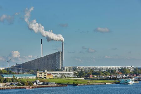 Copenhagen. Denmark. 12. September. 2021. Beautiful iew of Amager Bakke factory with skiing slope on the rooftop in Copenhagen, Denmark. Sights. Europe.