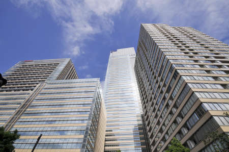Top of modern buildings in Tokyo, Japan. Tokyo is the seat of the Emperor of Japan and the Japanese government.