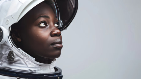 Young black African American female astronaut woman
