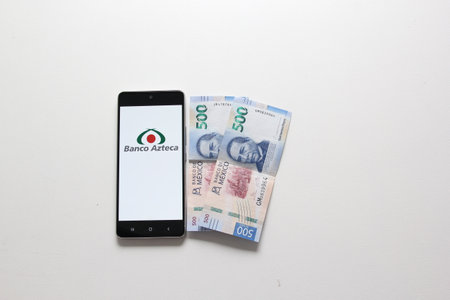 Mexico City, Mexico - Nov 9 2022: Banco Azteca, from Grupo Salinas, a 100% Mexican institution that promotes the financial development of families and companies in Mexico