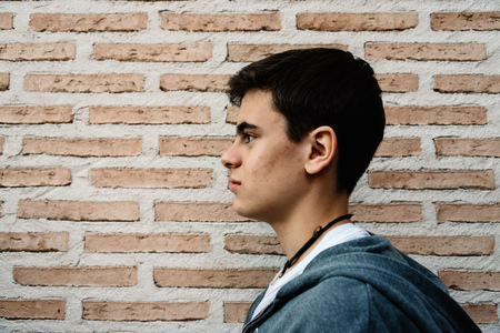 Side head shot of young adult man