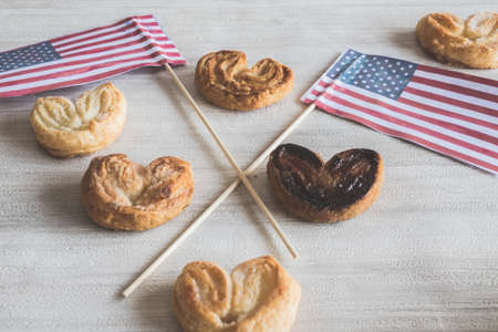 USA national holidays Memorial day American flag on wooden background America sign decorated letter