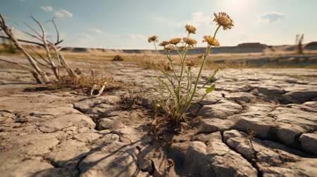 AI Generated. Metaphor of life struggling in arid land symbolizing the impact of drought and global climate change