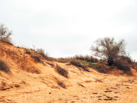 sand dunes on the shores of the Caspian Sea in Kazakhstan