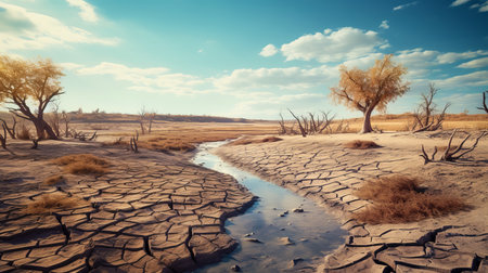 The dried-up river beds and cracked earth of a famine-ravaged land AI generated