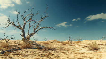 AI Generated. Desert pollution impact a bare tree in a parched landscape under a harsh sun