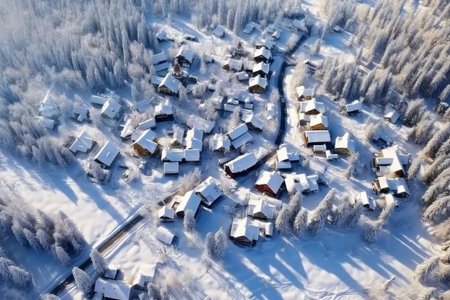 Generative AI : Aerial view of a winter wood near Kuusamo Region of Lapland Finland