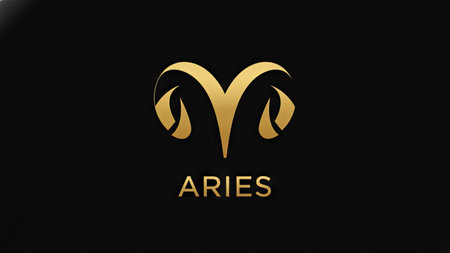 The image showcases the Aries zodiac symbol rendered in gold against a dark backdrop. The design employs a linear style, highlighting the ram's horns and the word 'ARIES'. The visual is clean and modern, likely designed to symbolize the astrological sign in various applications, such as for commercial use and editorial content.