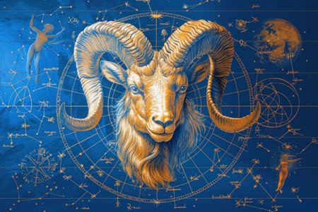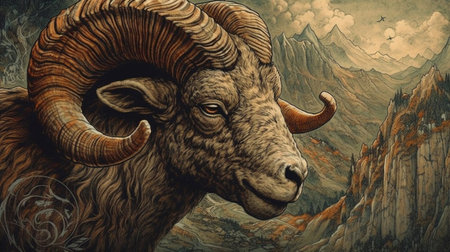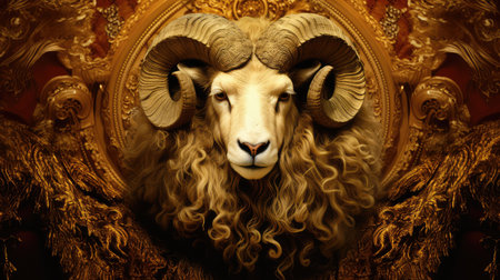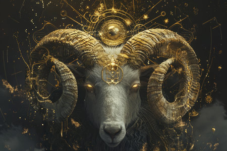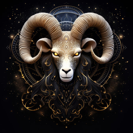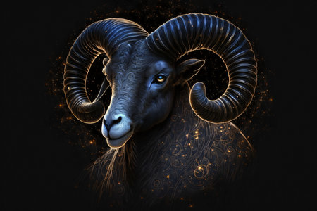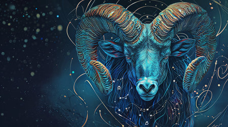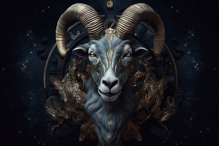 Aries Zodiac sign, Goat ram horoscope astrology wallpaper background illustration, Generated by AI