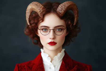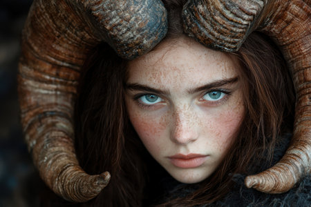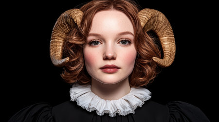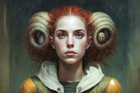 Aries zodiac sign as a beautiful girl person with horns. Astrological horoscope fantasy character. Horned.
