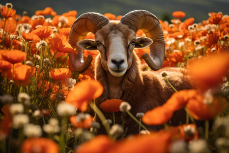 Blossoming Beauty: Ram on a Vibrant Flower Field [AR 3:2]