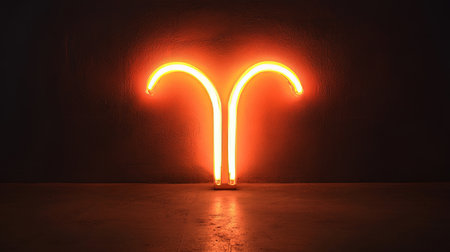 Neon Orange Aries Zodiac Sign Against Dark Background, Astrology, and Horoscope Concept.