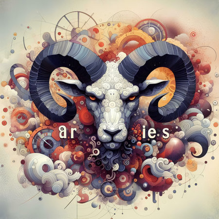 Aries capturing the independent and passionate spirit with a charging ram and vibrant energy