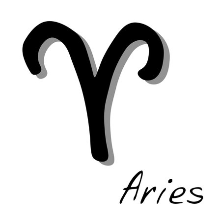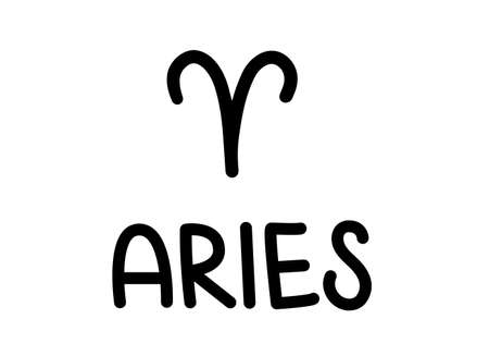 Aries. Handwritten name and icon of sign of zodiac. Modern marker. Black vector text isolated on white background. Minimalistic style