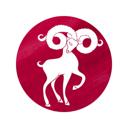 White silhouette of aries are on red watercolor background. Vector illustration