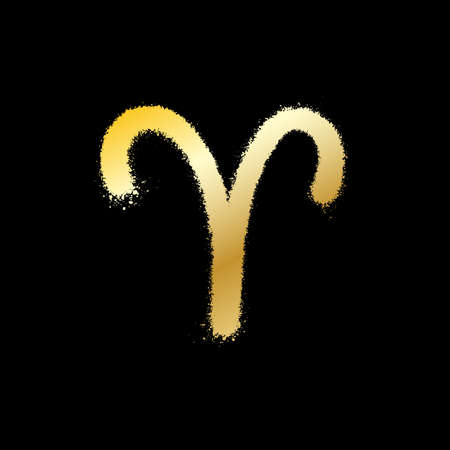 Aries zodiac sign. Gold paint sprayed icon. Vector illustration