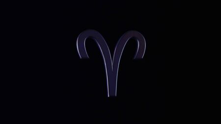 Zodiac sign on black background. Animation. 3D animation with textural shape of zodiac sign rotating on black background. Zodiac symbol or sign of Aries
