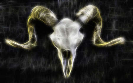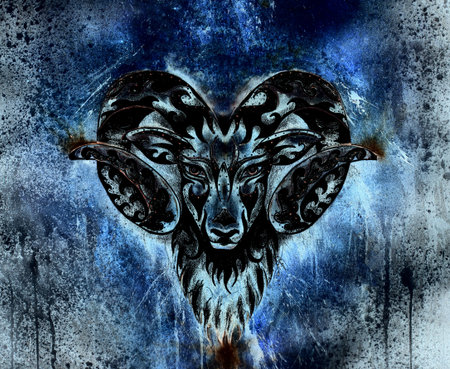 ornamental drawing of Aries, sacred animal symbol. Color effect.