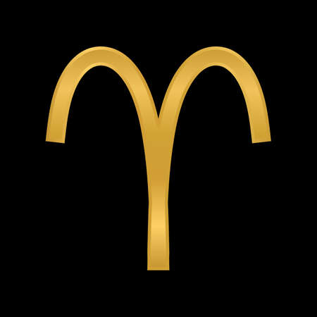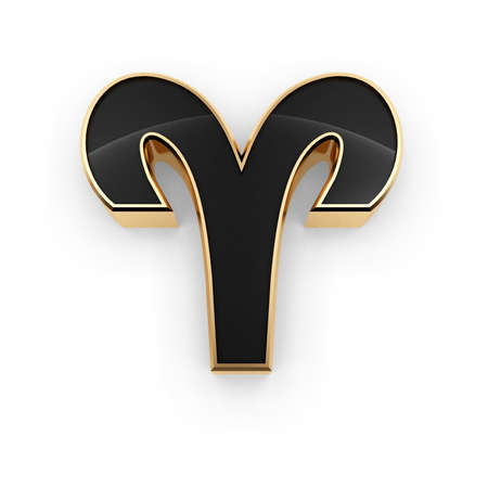 Gold Aries Zodiac sign, 3D rendering