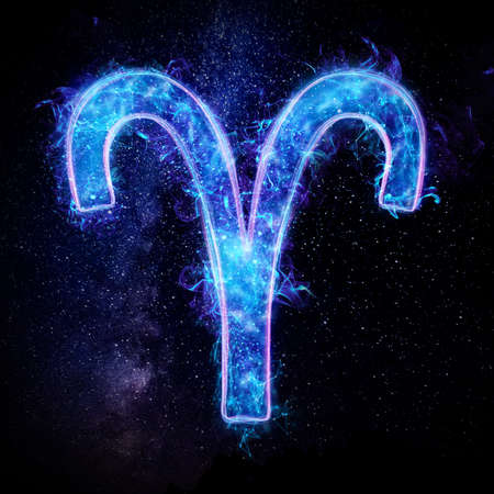 Aries astrological sign in night sky with beautiful sky