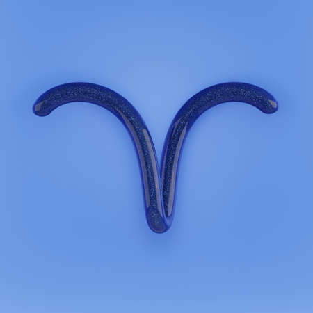 3D illustration of Aries Zodiac sign. Glittering and shining blue Aries Zodiac sign