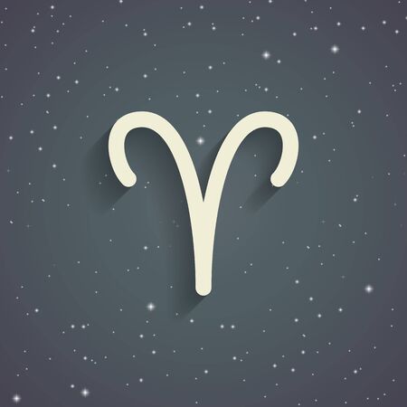 Aries zodiac symbol, zodiac icon on the background of gray starry sky