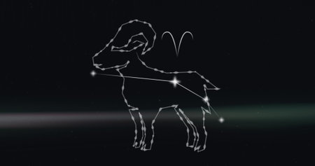 Image of aries star sign symbol over glowing stars. horoscope and zodiac sign concept digitally generated image.