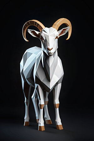 Low poly goat isolated on black background. 3d render illustration.