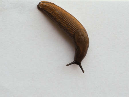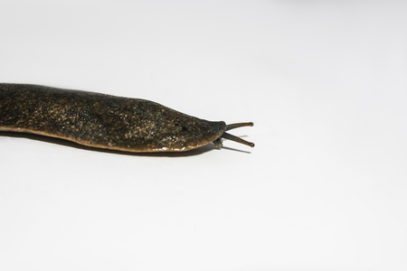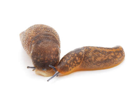 Close up slug, or land slug on the white background. It has no shell terrestrial gastropod mollusc.