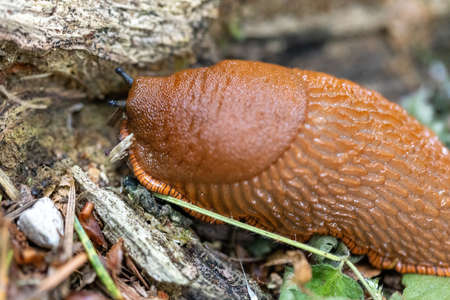 The Spanish slug spreads across Europe and is an invasive pest in fields and gardens. It probably doesn't come from Spain. Close-up.