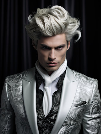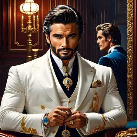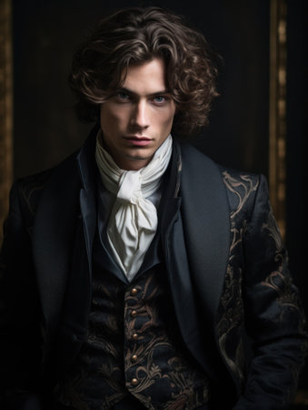 the gentleman, adorned in lavish attire, exudes elegance and sophistication, embodying the opulence of the baroque era, with intricate patterns, rich fabrics, and ornate accessories, showcasing the grandeur and majesty of 17th-century european aristocracy in a stunning portrait. ai generated