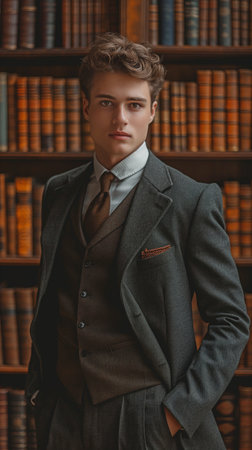 Young man in vintage Victorian attire