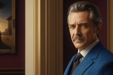 Portrait of an elderly man with a mustache in a blue suit