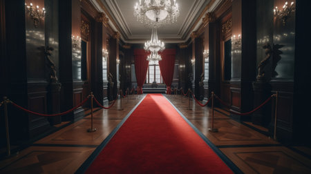 VIP luxury entrance with red carpet realistic. Al generated illustration