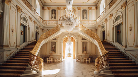 Luxurious baroque interior with ornate furniture and rich decor in classic palace setting.