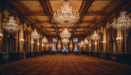 Luxury chandelier illuminates elegant domestic room in famous historic building generated by artificial intelligence