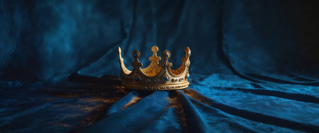 AI Generated. Golden Crown on Blue Textured Background with Spotlight