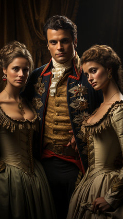 Capturing passion in the renaissance, victorian, and baroque era: a timeless love story portrayed by a couple in vintage attire, embracing the elegance, romance, and nostalgia of historical periods