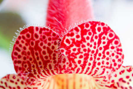 An elegant macro shot of a delicate orchid with detailed textures and vibrant colors, highlighting the beauty of its intricate patterns.
