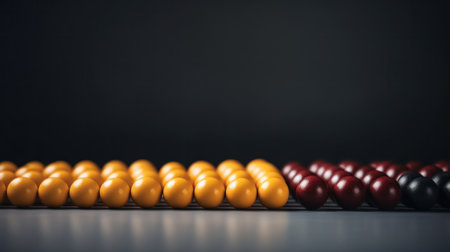 A row of red and yellow beads on a black surface, AI