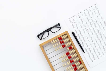 Vintage accounting wooden abacus. Financial calculations concept