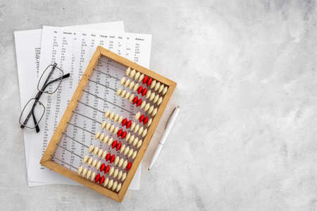 Accounting abacus on gray textured background with copy space