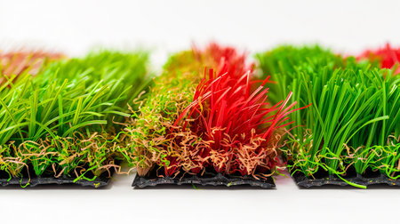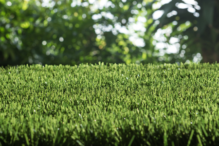 Detailed shot showcasing the texture and color of synthetic turf. The artificial grass appears lush and well-maintained, highlighting a clean and appealing outdoor surface.