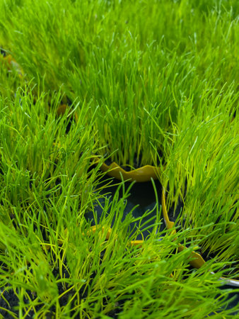 Vibrant green grass background texture, creating a natural and realistic lawn effect
