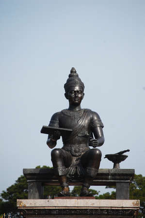 Monument Pho Khun Ram Khamhaeng Maharat statue for travelers thai and foreign people travel visit respect praying at Si Satchanalai Historical Park Unesco World Heritage Site in Sukhothai, Thailand