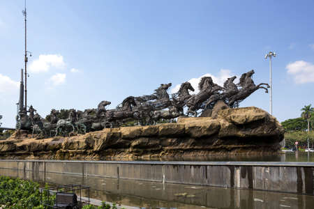 JAKARTA - August 10: Arjuna Wijaya chariot statue and fountain in Central Jakarta. August 10, 2015 in Jakarta, Indonesia.