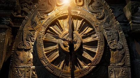 Ancient sundial, intricate carvings, whispers of the past, unveils memories lost to time Photography, Backlights, Vignette, Frontal view