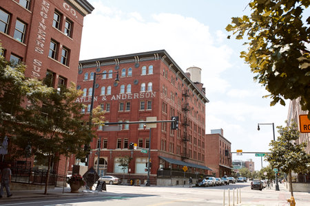 Denver, Colorado - August 4th, 2020: Ghost signs on red brick buildings in Downtown Denver. Denver, Colorado, USA