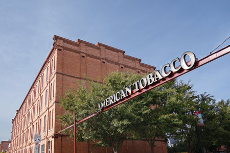 DURHAM,NC/USA - 10-23-2018: American Tobacco complex in downtown Durham, which includes restuarants and businesses in renovated tobacco warehouses